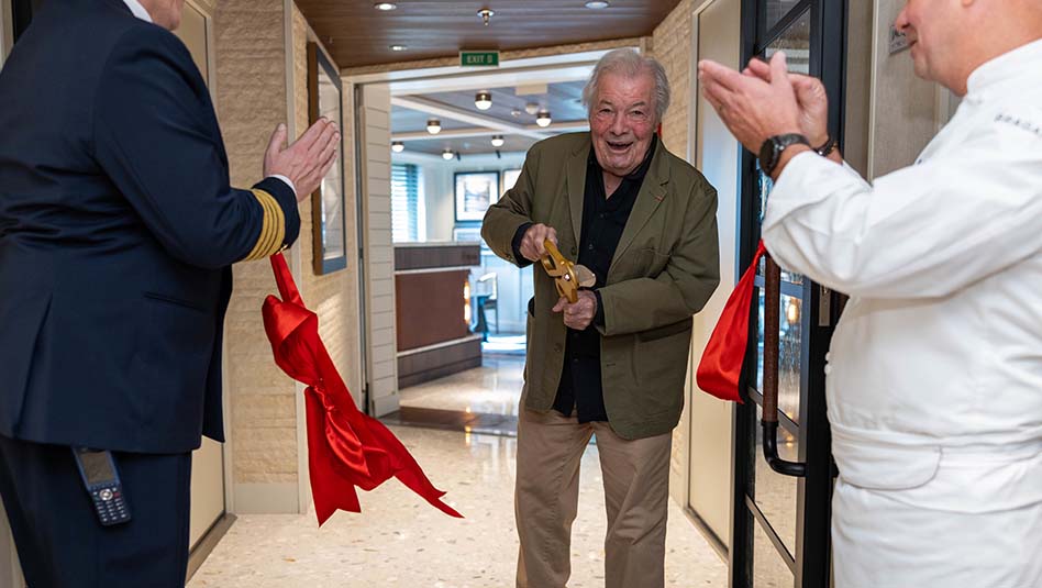 השף האגדי ז’אק פפן גזר את הסרט בטקס חגיגי בבוסטון, לציון השקת גרסה חדשה למסעדה הצרפתית האייקונית שנושאת את שמו ב-Oceania Allura